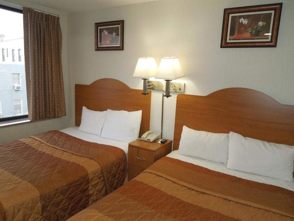 The gallery captures the sophistication and charm of the Vue Express 39th Street, featuring images of comfortable rooms and spacious bathrooms with exceptional amenities. Highlights of the property also include a terrace, a modern front desk area, and a private parking area, making it the most affordable, cheap Brooklyn hotel.